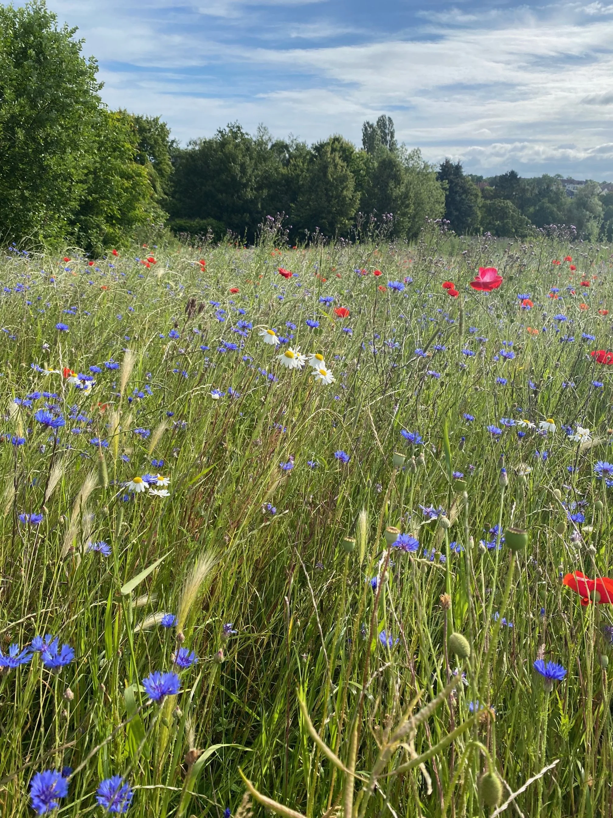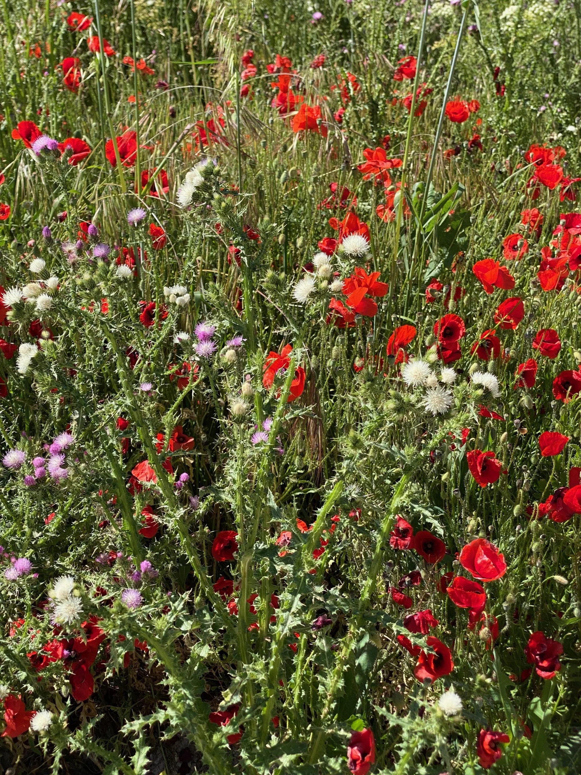 While living in Germany, pregnant with my third baby and with her two sisters alongside, I’d take daily walks to a poppy filled wildflower field in the village where we lived. Although the farmers tended the fields around it with the precise attention and neatness Germany is known for, they left this wild unruly piece of land to grow free amongst the neat plowed symmetry of the surrounding fields.
