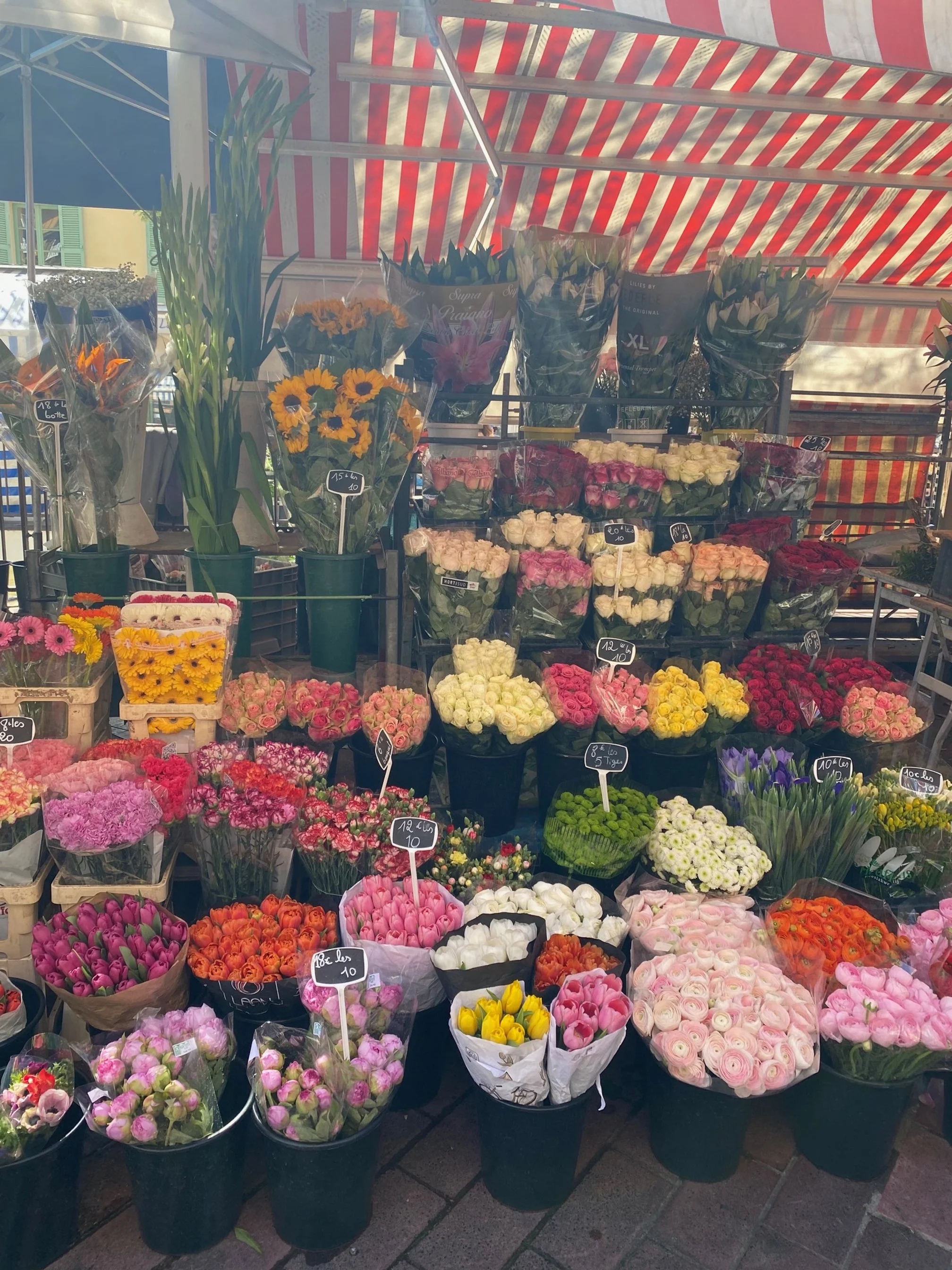 Like a field full of surprise wildflowers, I lean into a maximalist style: more color, more detail, more joy. My approach to floral design is intentionally lush and layered. Think tangled vines, blooming abundance, and petals piled on petals. Like a flower itself, each composition is a celebration of the magic that is a flower from seed to bloom. In my work you can experience the magic I experienced in the energy of Marché Aux Fleurs - Cours Saleya - Nice (add in my painterly stripes and it’s as if you are under the markets canopy yourself!) to European wildflower fields in peak bloom—when nature is unapologetically full and gloriously chaotic.